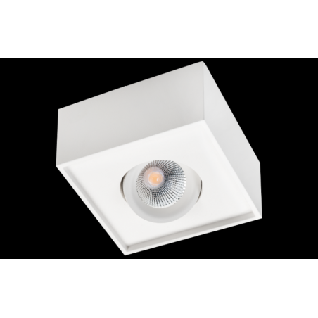 Description: Downlight, LED intérieur plafonnier luminaire montage saillie, blanc, 8W, 2700K. inclinable 30 degrés dans toutes les directions, driver incl., dimmable coupure de phase. Mat.: aluminium, verre transparent. Classe I, IP21, faisceau 42 degrés, Ra>95, SDCM 2