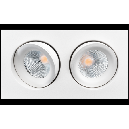 Description: Downlight, LED intérieur plafonnier downlight, blanc, 2x8W, 3000K. inclinable 30 degrés dans toutes les directions, driver incl., dimmable coupure de phase. découpe 83 mm. Mat.: aluminium, verre transparent. Classe III, IP44, faisceau 42 degrés, Ra>95, SDCM 2