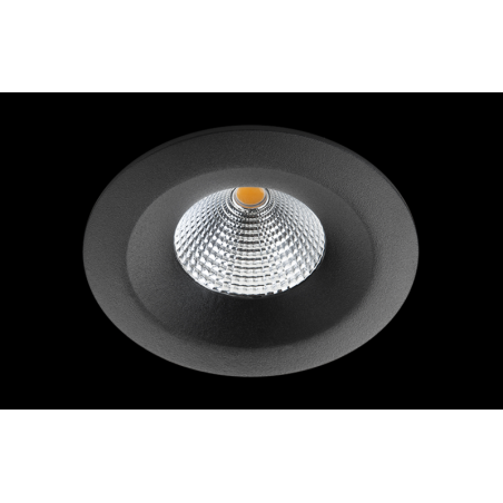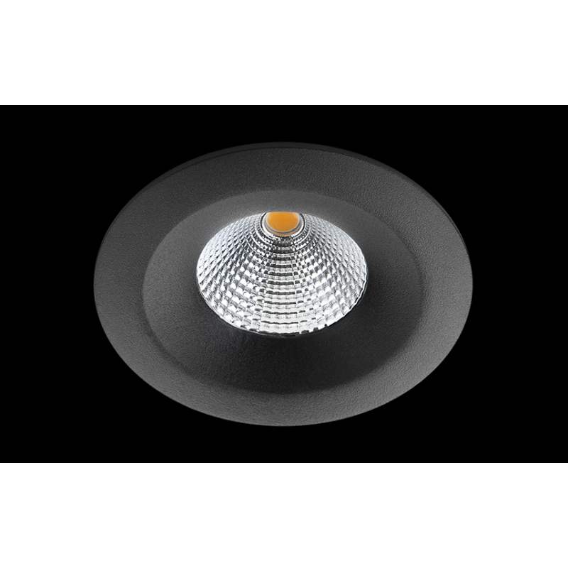Description: Downlight, Led int et extérieur plafonnier downlight, noir, 7W, 3000K. pas inclin. Driver incl., dimmable coupure de phase. découpe 83 mm. mat.: alu., verre transp. Classe II, IP54, faisceau 42 degrés, Ra>95, SDCM 2, 680 lm
