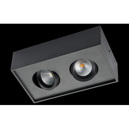 Description: Downlight, LED intérieur plafonnier luminaire montage saillie, noir, 2x6W, DTW 2000-2800K. inclin. 30 degrés dans toutes les directions, driver incl., dimmable coupure de phase. mat.: alu., verre transp. Classe I, IP21, faisceau 42 degrés, Ra>95, SDCM 3, 1010 lm