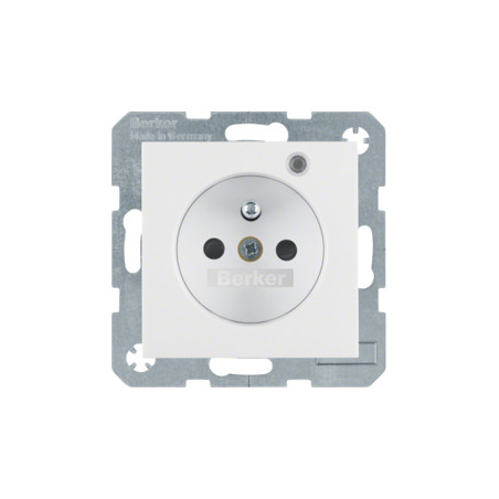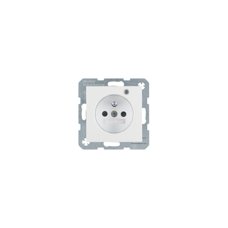 Emballage: 1 - 10 - 40 - 1280 Marque: Berker (Hager)Référence: 6765091909EAN: 4011334362654Description: Prise de courant avec LED de contrôle S.1 blanc polaire, mat