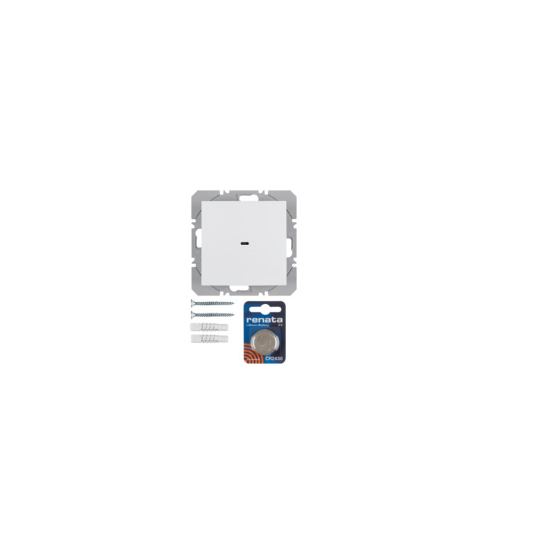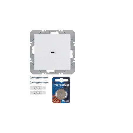 Description: Bouton-poussoir simple à pile radio Quicklink Knx S.1 blanc polaire brillant