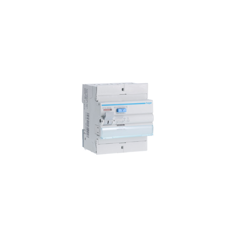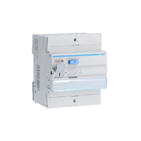 Emballage: 1 - 1 - 36 - 864 Marque: HagerRéférence: CPA463EEAN: 3250611614418Description: Interrupteur différentiel 4P 63A 300mA type A S 4M.