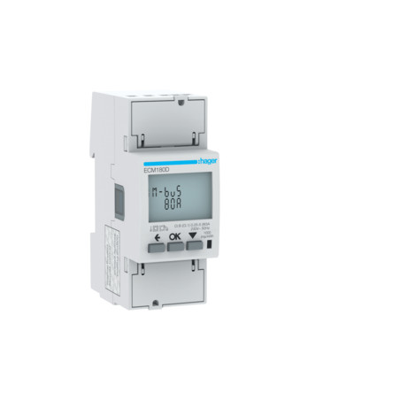 Emballage: 1 - 1 - 36 - 864 Marque: HagerRéférence: ECM180DEAN: 3250612231317Description: Compteur monoph. P+N direct 80A 2M Mbus MID
