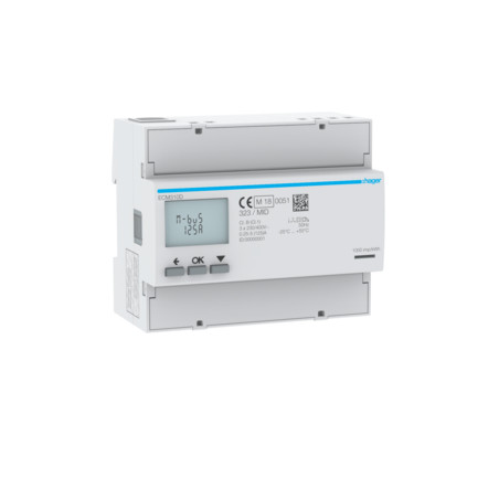 Emballage: 1 - 1 - 12 - 288 Marque: HagerRéférence: ECM310DEAN: 3250612231331Description: Compteur triphasé 3P+N direct 125A 6M Mbus MID