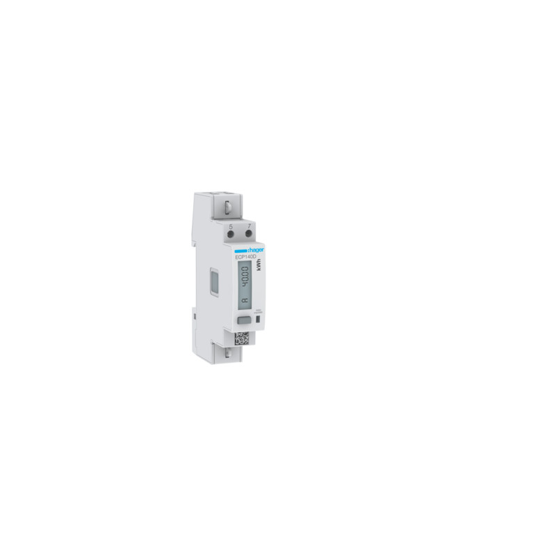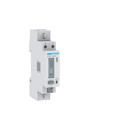 Emballage: 1 - 1 - 48 - 1152 Marque: HagerRéférence: ECP140DEAN: 3250612231362Description: Compteur monophasé P+N direct 40A 1M S0 MID