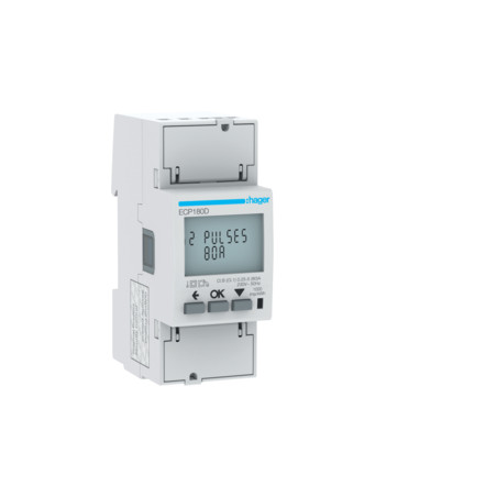 Emballage: 1 - 1 - 36 - 864 Marque: HagerRéférence: ECP180DEAN: 3250612231386Description: Compteur monoph. P+N direct 80A 2M S0 MID