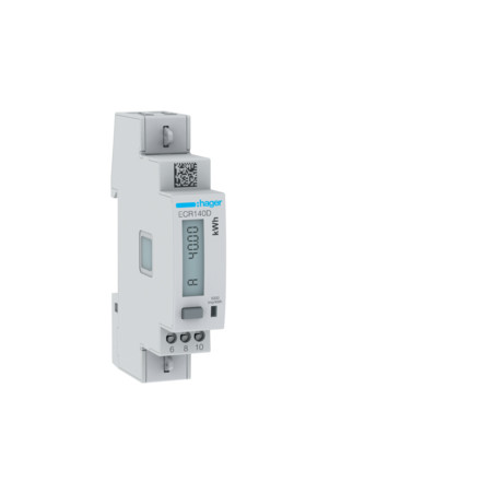 Emballage: 1 - 1 - 48 - 1152 Marque: HagerRéférence: ECR140DEAN: 3250612231423Description: Compteur monoph. P+N direct 40A 1M Modbus MID