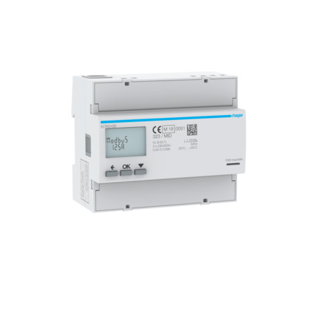 Emballage: 1 - 1 - 12 - 288 Marque: HagerRéférence: ECR310DEAN: 3250612231461Description: Compteur triphasé 3P+N direct 125A 6M Modbus MID