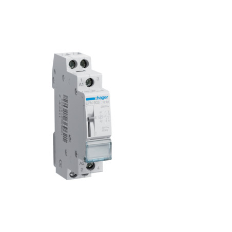 Emballage: 1 - 1 - 108 - 2592 Marque: HagerRéférence: EPN503EAN: 3250612369621Description: Télérupteur 16A 48V AC 1NO+1NF 1M.