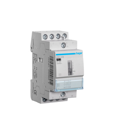 Emballage: 1 - 1 - 60 - 1440 Marque: HagerRéférence: ERD418EAN: 3250612400805Description: Relais de commande 4x16A 24V 2NO+2NF 2M.
