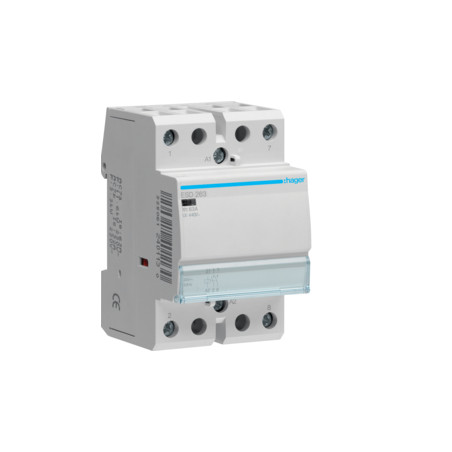 Emballage: 1 - 1 - 48 - 1152 Marque: HagerRéférence: ESD263EAN: 3250612401130Description: Contacteur 2x63A 24V 2NO 3M.