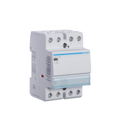 Emballage: 1 - 1 - 48 - 1152 Marque: HagerRéférence: ESD464EAN: 3250612401383Description: Contacteur 4x63A 24V 4NF 3M.