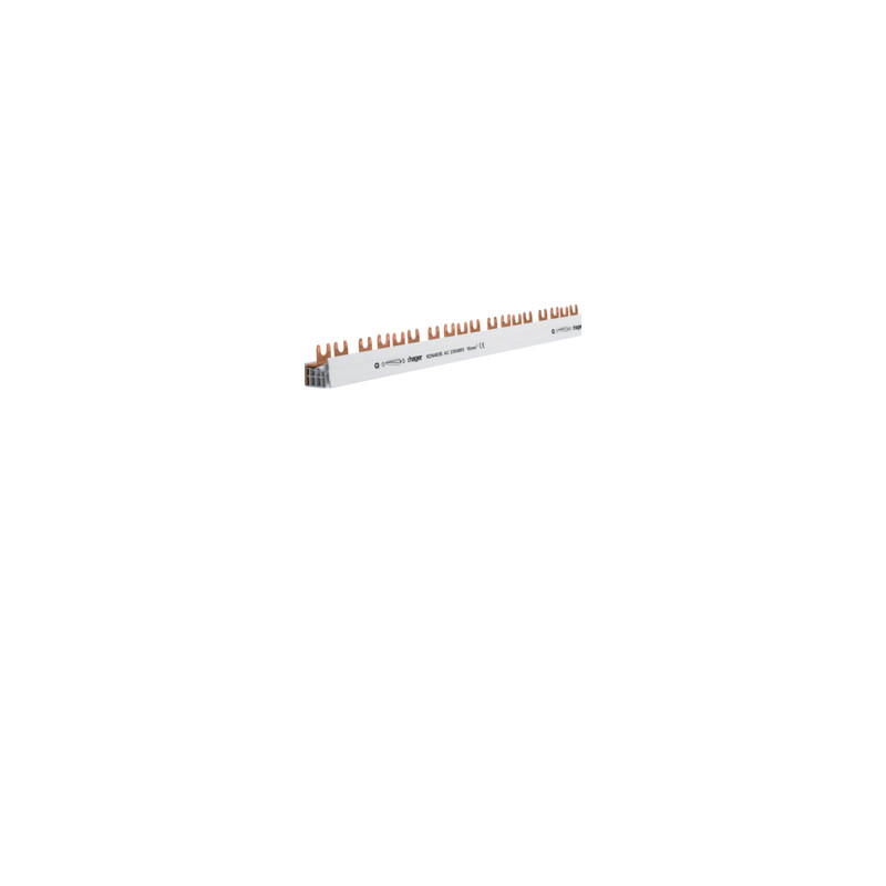 Emballage: 10 - 10 - 600 Marque: HagerRéférence: KDN463BEAN: 3250613740979Description: Barre de pontage 4P 63A fourche 10mm² 57M