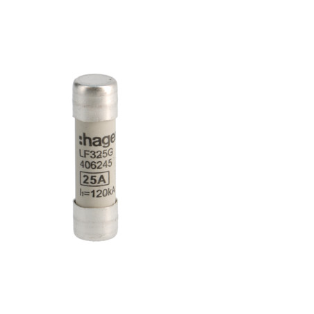 Emballage: 1 - 10 - 2000 - 48000 Marque: HagerRéférence: LF325GEAN: 3250614062452Description: Cartouche-fusible 10x38 gG 25A