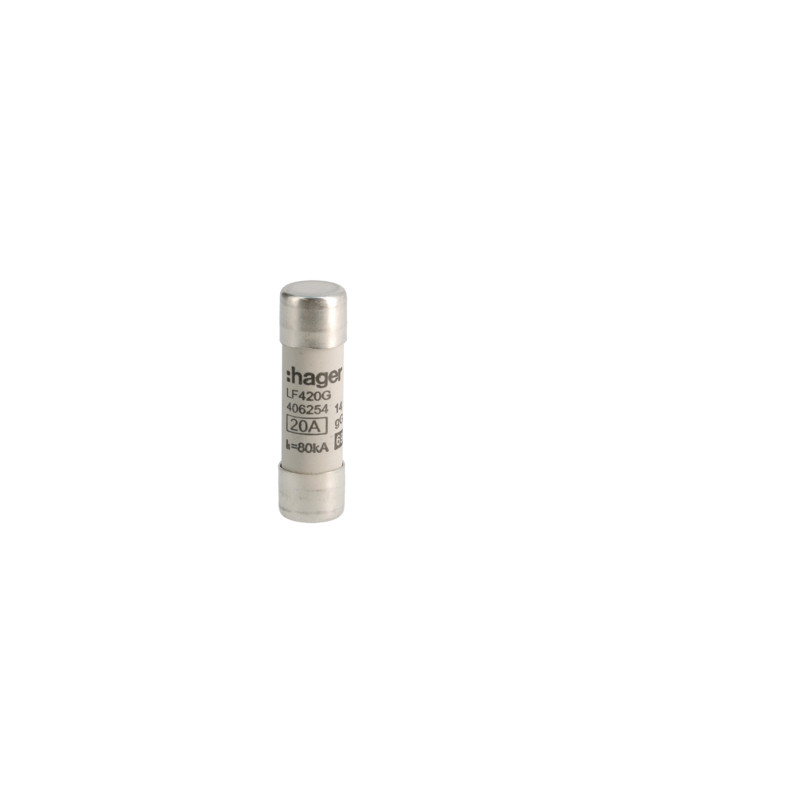 Emballage: 1 - 10 - 1000 - 24000 Marque: HagerRéférence: LF420GEAN: 3250614062544Description: Cartouche-fusible 14x51 gG 20A