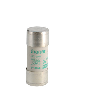 Emballage: 1 - 10 - 300 - 7200 Marque: HagerRéférence: LF550MEAN: 3250614062308Description: Cartouche-fusible indus. 22x58 aM 50A