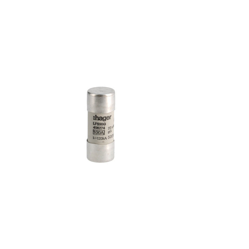 Emballage: 1 - 10 - 300 - 7200 Marque: HagerRéférence: LF590GEAN: 3250614062742Description: Cartouche-fusible 22x58 gG 100A