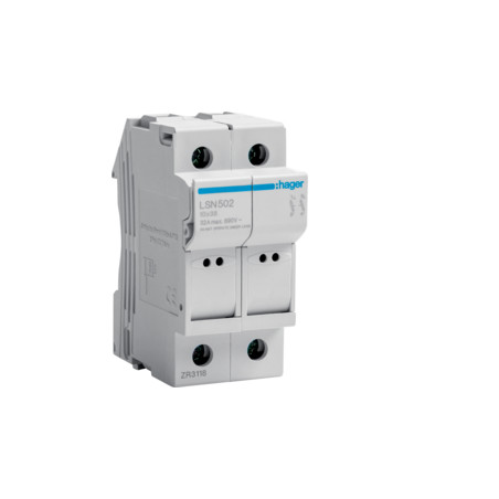 Emballage: 1 - 6 - 96 - 2304 Marque: HagerRéférence: LSN502EAN: 3250614120084Description: Coupe-circuit 10x38 - 2P - 2M.