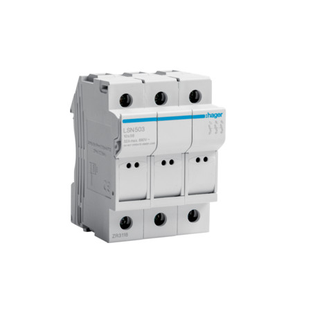 Emballage: 1 - 4 - 64 - 1536 Marque: HagerRéférence: LSN503EAN: 3250614120091Description: Coupe-circuit 10x38 - 3P - 3M.