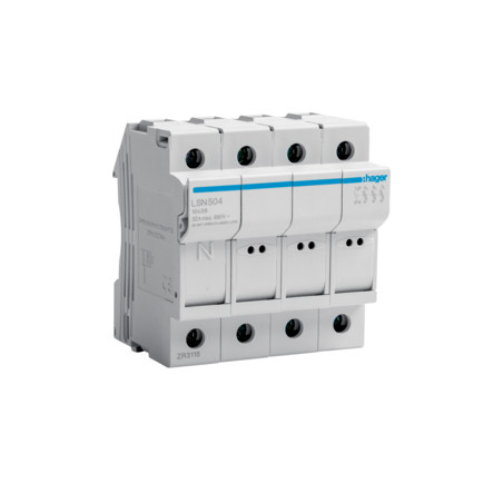 Emballage: 1 - 3 - 48 - 1152 Marque: HagerRéférence: LSN504EAN: 3250614120107Description: Coupe-circuit 10x38 - 3P+N - 4M.
