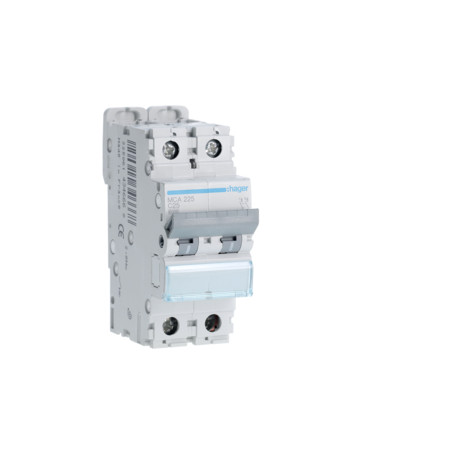 Emballage: 1 - 6 - 72 - 1728 Marque: HagerRéférence: MCA225EAN: 3250614346668Description: Disjoncteur 6kA - C - 2P - 25A - 2M.