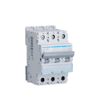Emballage: 1 - 4 - 48 - 1152 Marque: HagerRéférence: MCA306EAN: 3250614346767Description: Disjoncteur 6kA - C - 3P - 6A - 3M.