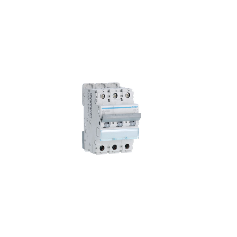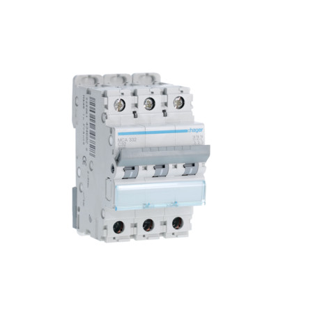 Emballage: 1 - 4 - 48 - 1152 Marque: HagerRéférence: MCA332EAN: 3250614346828Description: Disjoncteur 6kA - C - 3P - 32A - 3M.