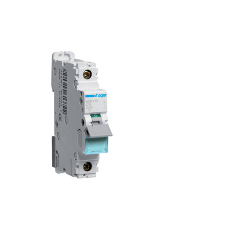Emballage: 1 - 12 - 144 - 3456 Marque: HagerRéférence: NCN116EAN: 3250614614620Description: Disjoncteur 10kA - C - 1P - 16A - 1M.