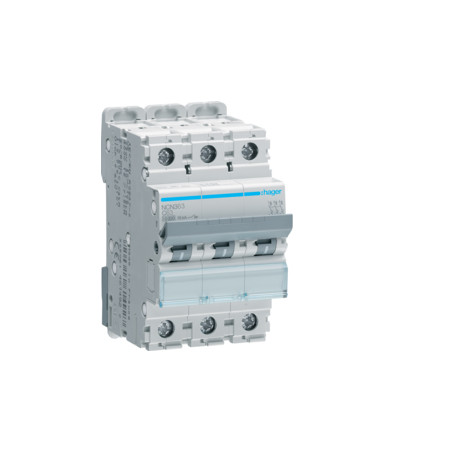 Emballage: 1 - 4 - 48 - 1152 Marque: HagerRéférence: NCN363EAN: 3250614614989Description: Disjoncteur 10kA - C - 3P - 63A - 3M.