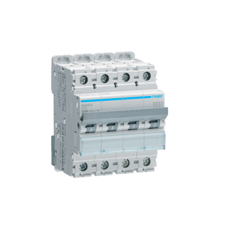 Emballage: 1 - 3 - 36 - 864 Marque: HagerRéférence: NDN410EAN: 3250614611896Description: Disjoncteur 10kA - D - 4P - 10A - 4M.
