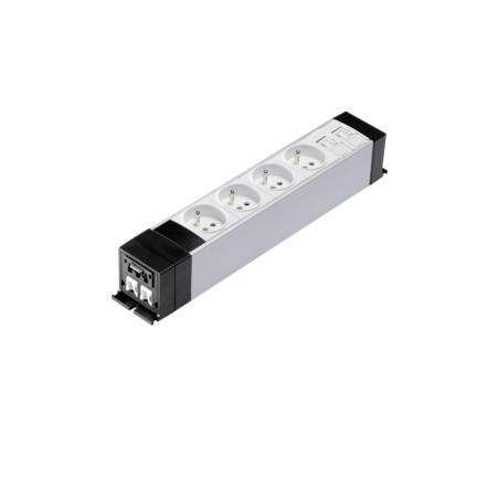 Bloc multiprises précablée 4 x 230 V 2P+T avec fiche à connexion rapide, 2 x RJ45 Cat 6 UTP patch/patch