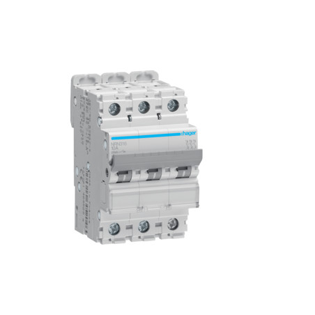 Emballage: 1 - 1 - 48 - 1152 Marque: HagerRéférence: NRN316EAN: 3250614645167Description: Disjoncteur 25kA - C - 3P - 16A - 3M.