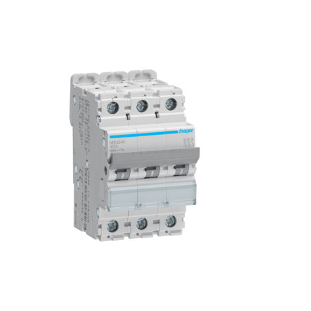 Emballage: 1 - 1 - 48 - 1152 Marque: HagerRéférence: NRN340EAN: 3250614645204Description: Disjoncteur 20kA - C - 3P - 40A - 3M.