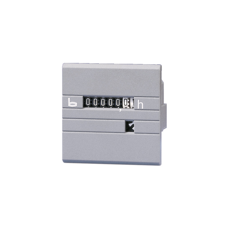 Description: COMPTEUR HORAIRE SANS REMISE À ZÉRO 99.999,99H DINRAIL 230VAC 50HZ 48X48MM GRIS