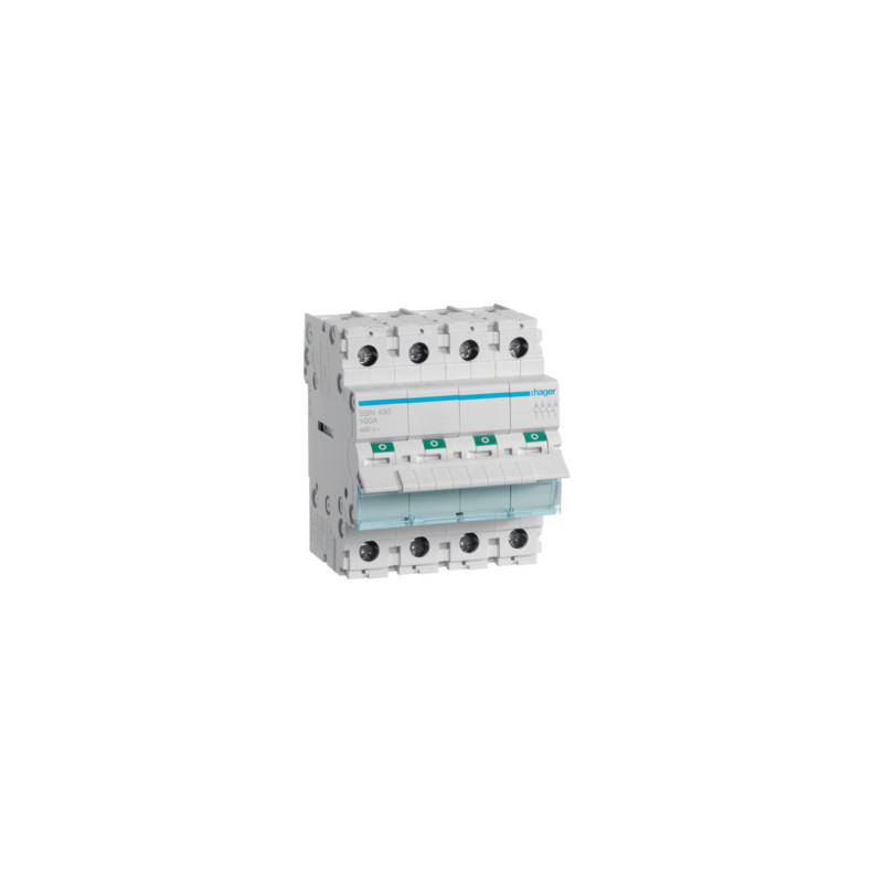 Emballage: 1 - 1 - 36 - 864 Marque: HagerRéférence: SBN490EAN: 3250615510310Description: Interrupteur modulaire 4 pôles 100A