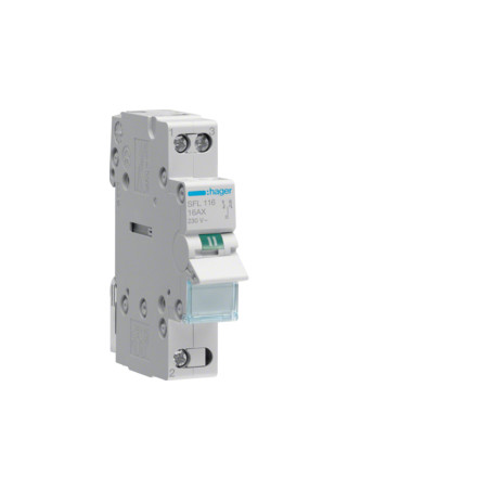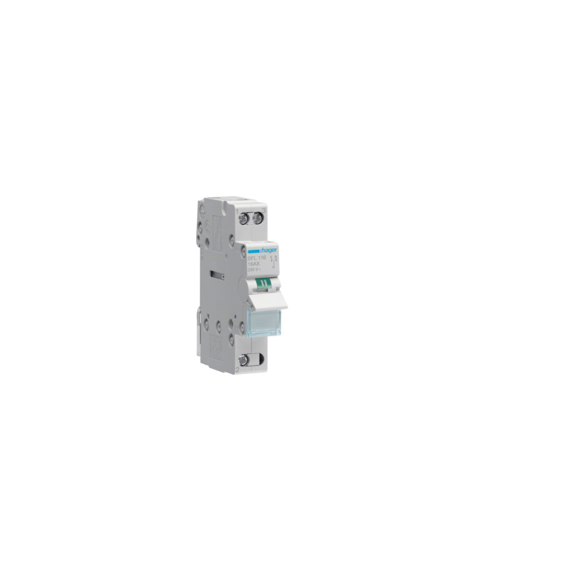 Emballage: 1 - 1 - 108 - 2592 Marque: HagerRéférence: SFL116EAN: 3250615510716Description: Inverseur modulaire 1 pôles 16A, point commun aval, I-II