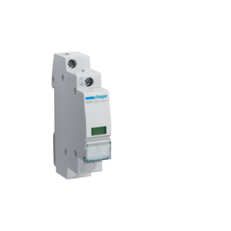 Emballage: 1 - 12 - 144 - 3456 Marque: HagerRéférence: SVN121EAN: 3250615721600Description: Voyant lumineux vert 1M.