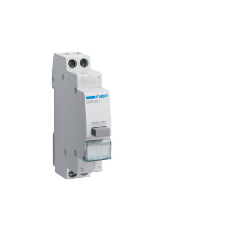 Emballage: 1 - 12 - 144 - 3456 Marque: HagerRéférence: SVN351EAN: 3250615721860Description: Bouton-poussoir à impulsion 1NO+1NF 16A 1M.