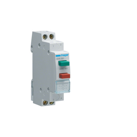 Emballage: 1 - 12 - 144 - 3456 Marque: HagerRéférence: SVN391EAN: 3250615721907Description: Bouton-poussoir à impulsion 1NO+1NF 16A 1M.