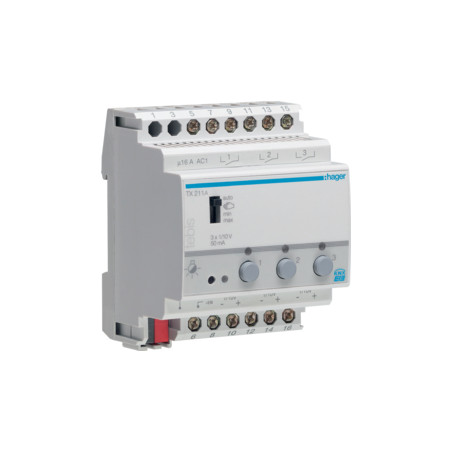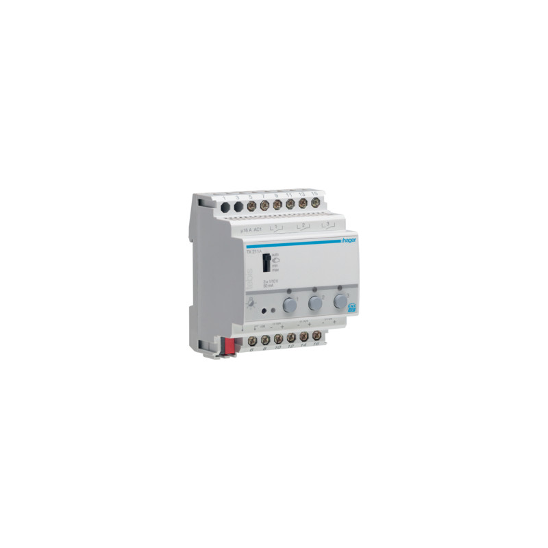 Emballage: 1 - 1 - 36 - 864 Marque: HagerRéférence: TX211AEAN: 3250617574037Description: Module 3 sorties 1-10V pr variateurs