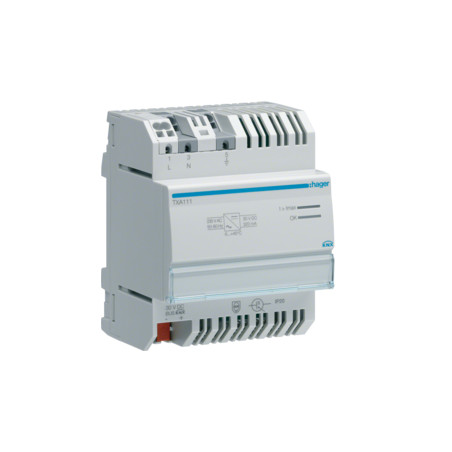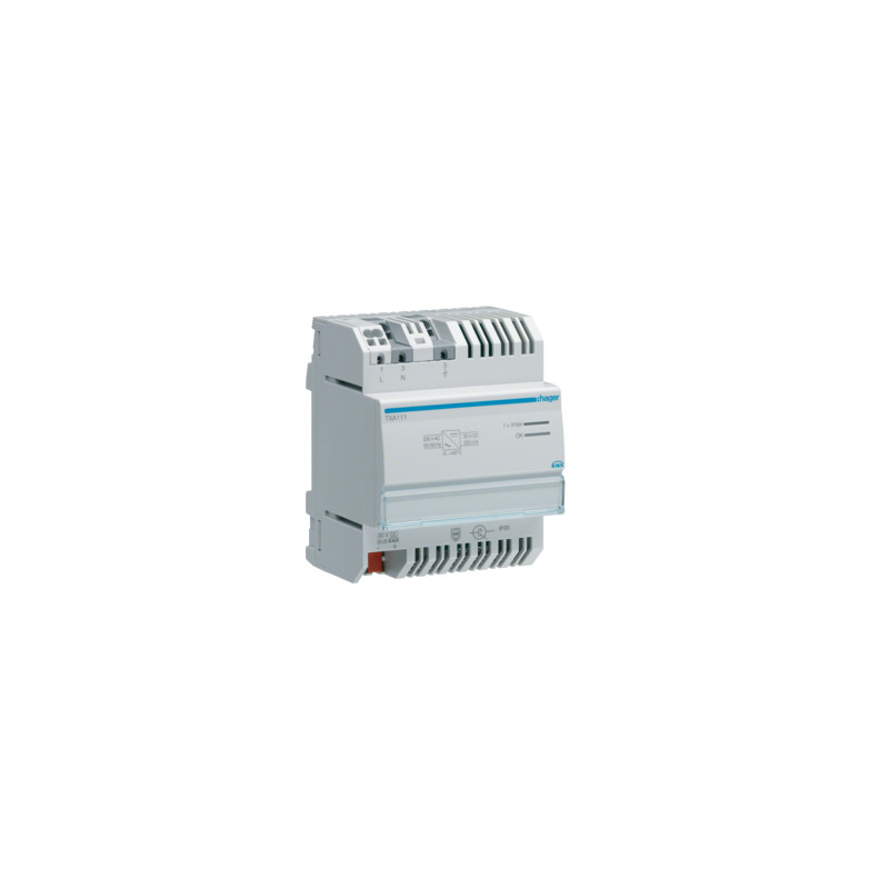 Emballage: 1 - 1 - 36 - 864 Marque: HagerRéférence: TXA111EAN: 3250616049451Description: Alimentation Bus 30V 320mA TBTS
