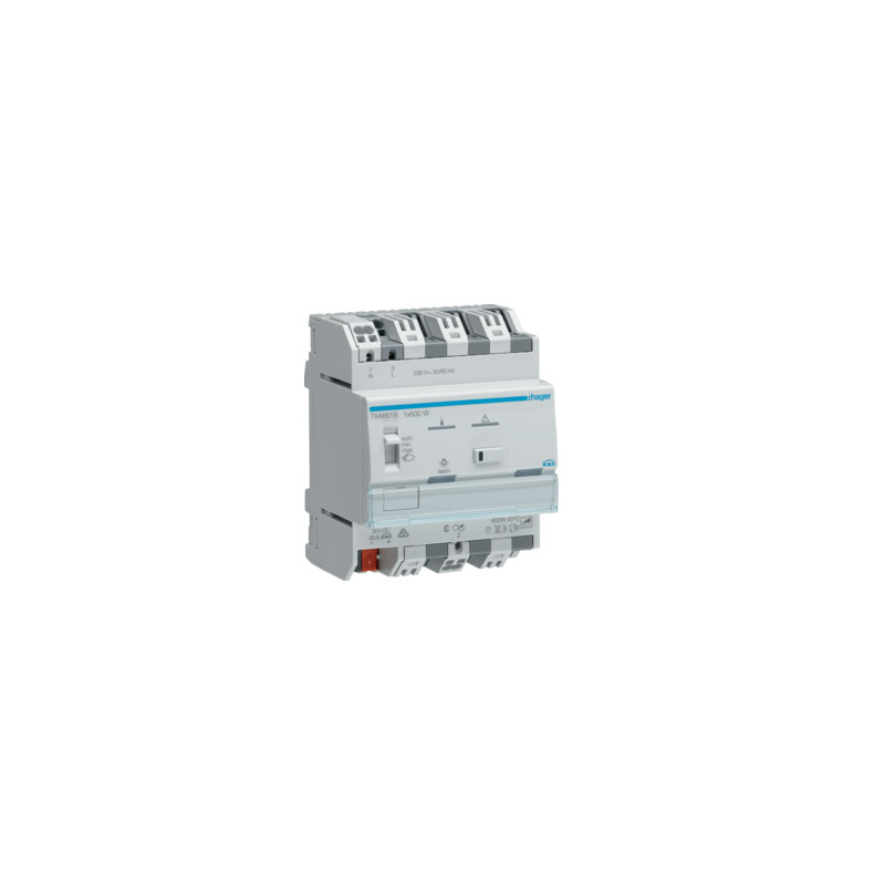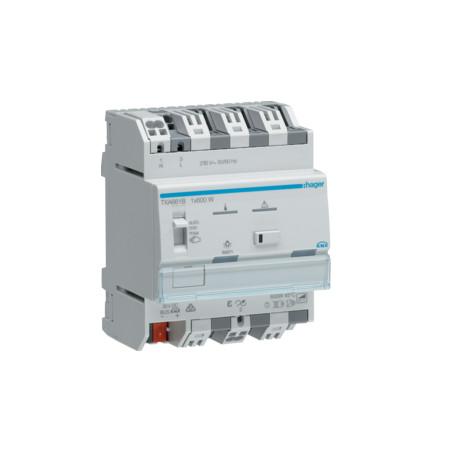 Emballage: 1 - 1 - 24 - 576 Marque: HagerRéférence: TXA661BEAN: 3250616048713Description: Module de sortie pr l'éclairage variable, 1 sortie directe 600W