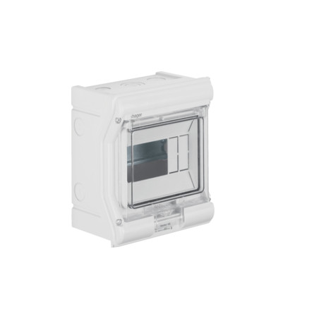 Emballage: 1 - 1 - 184 Marque: HagerRéférence: VE106PNEAN: 3250616450325Description: Coffret étanche vector IP65 1R. 6M., pr l'extérieur