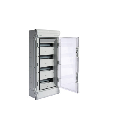 Emballage: 1 - 1 - 24 Marque: HagerRéférence: VE412MEAN: 3250616457119Description: Coffret étanche vector IP65 4R. 48M.