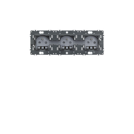 Emballage: 1 - 3 - 21 - 672 Marque: HagerRéférence: WXF123EAN: 3250617191234Description: Prise triple 2P+T précablée avec support