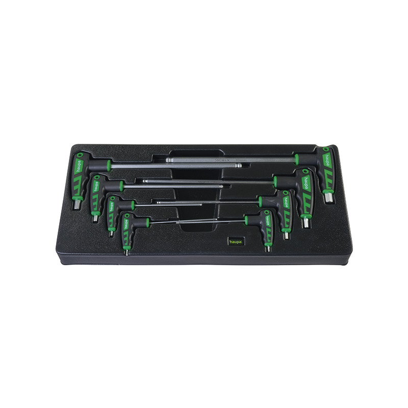 Emballage: 1Marque: HaupaRéférence: 100961EAN: Description: Jeu de tournevis hexagonaux, manche en T