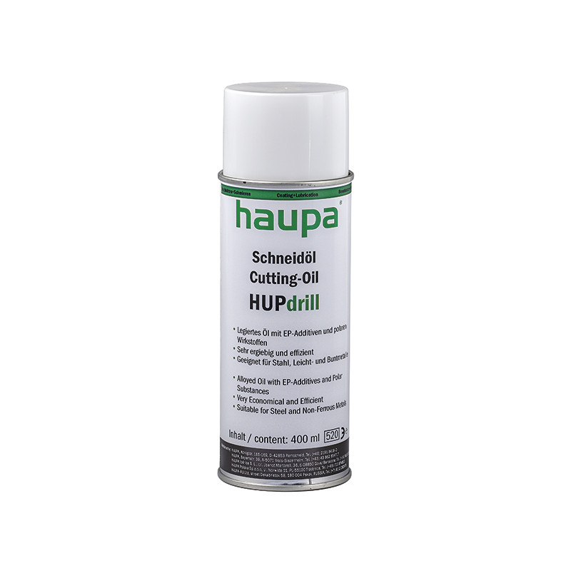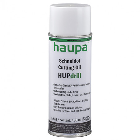 Emballage: 1Marque: HaupaRéférence: 170172EAN: Description: CUTTING OIL ''''HUPdrill'''' SPRAY 400ml