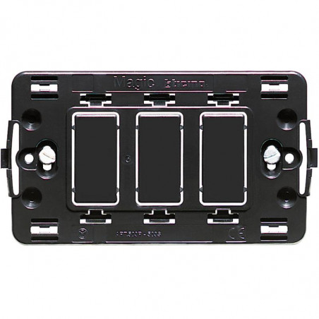 Emballage: 200 - 200 - 6400 Marque: BticinoRéférence: 503REAN: 8012199113630Description: Support Magic - pour 3 modules - à vis