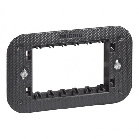 Emballage: 1 - 100 - 4000 Marque: BticinoRéférence: K4703EAN: 8005543611081Description: Living Now support à vis 3 modules avec coque de protection